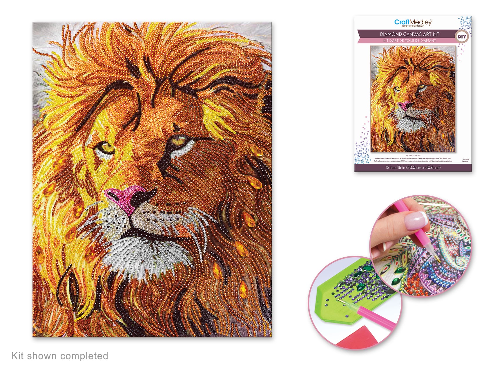 Craft Medley Kit: Diamond Painting Art Kit 12"x16" w/Gems+Tool+Tray Q) Lion