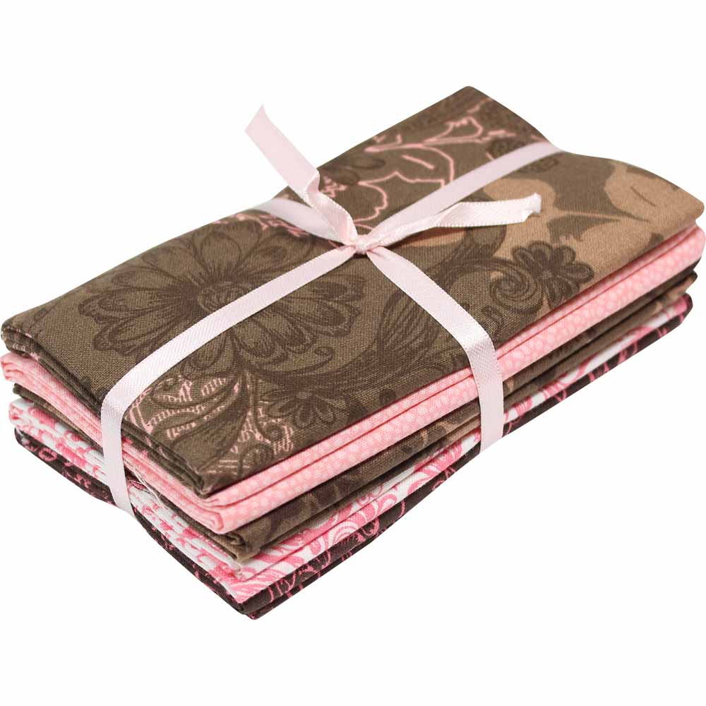 FABRIC CREATIONS Fabric Bundle (5pcs) - Pink & Brown - 45 x 53cm (18″ x 21″)