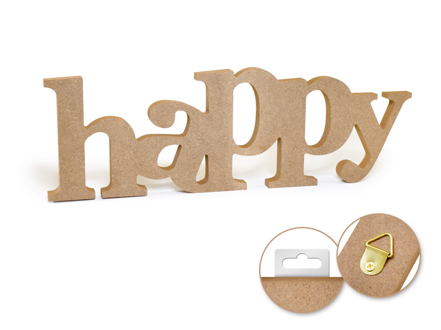 Wood Craft: 12" DIY Word Decor- MDF Standing K) Happy