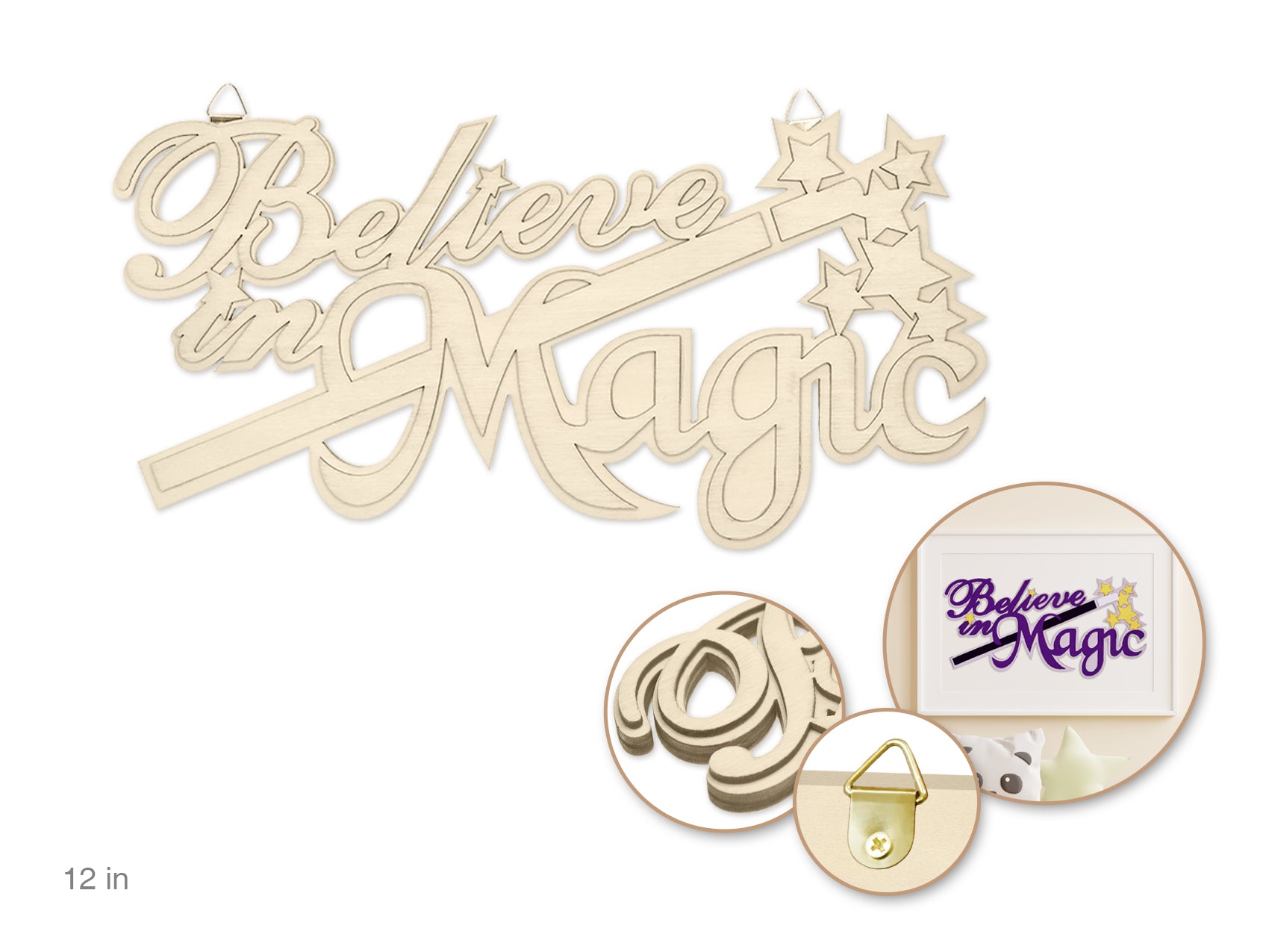 Wood Decor: 12" DIY Words Plaque 3D 7mm(T) w/Hook cw704